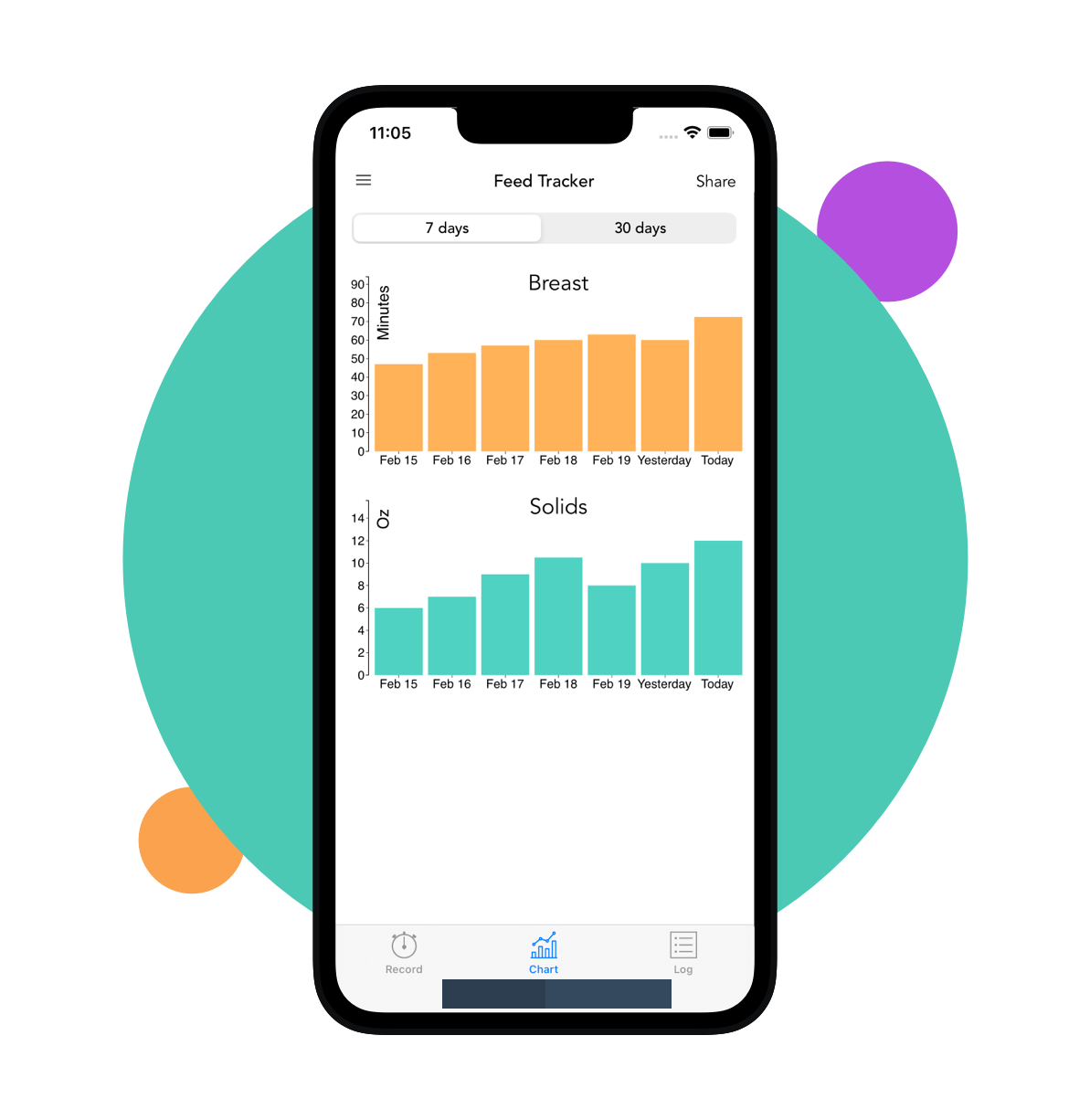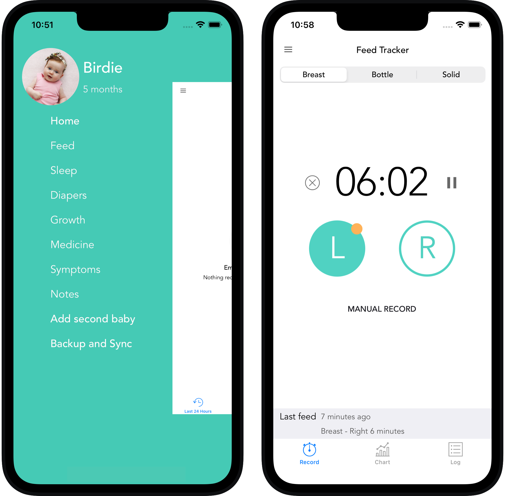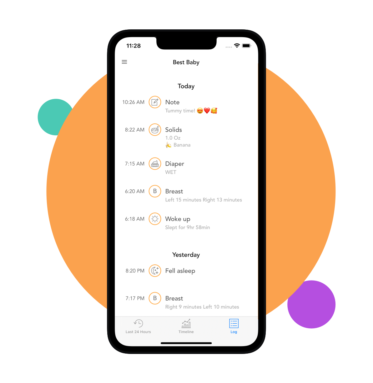 Keep track of your baby's sleep, feeds, diapers, growth, milestones, medicine, symptoms and general notes.